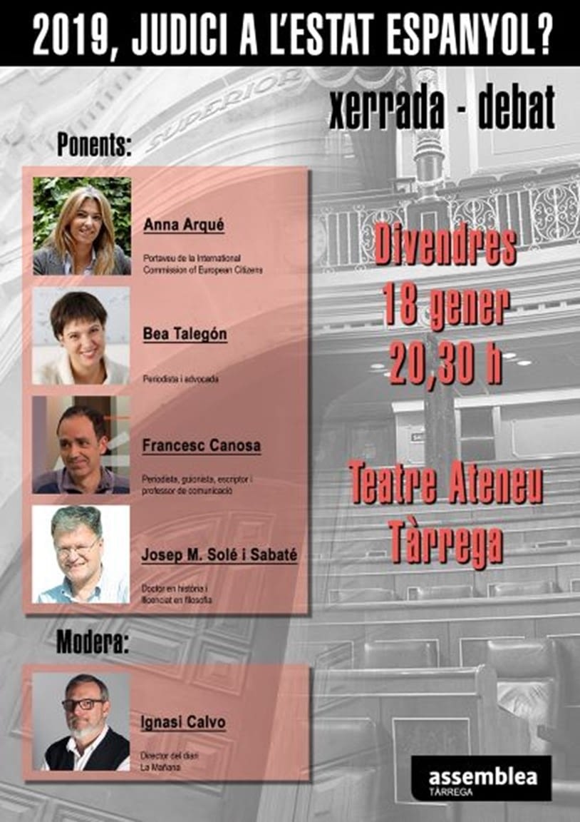 L’ANC de Tàrrega organitza la xerrada/debat ‘2019, Judici a l’estat espanyol?’