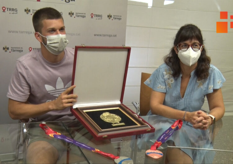 L’Ajuntament de Tàrrega rep l’atleta Arnau Monné després de guanyar dues medalles als campionats europeus sub-23