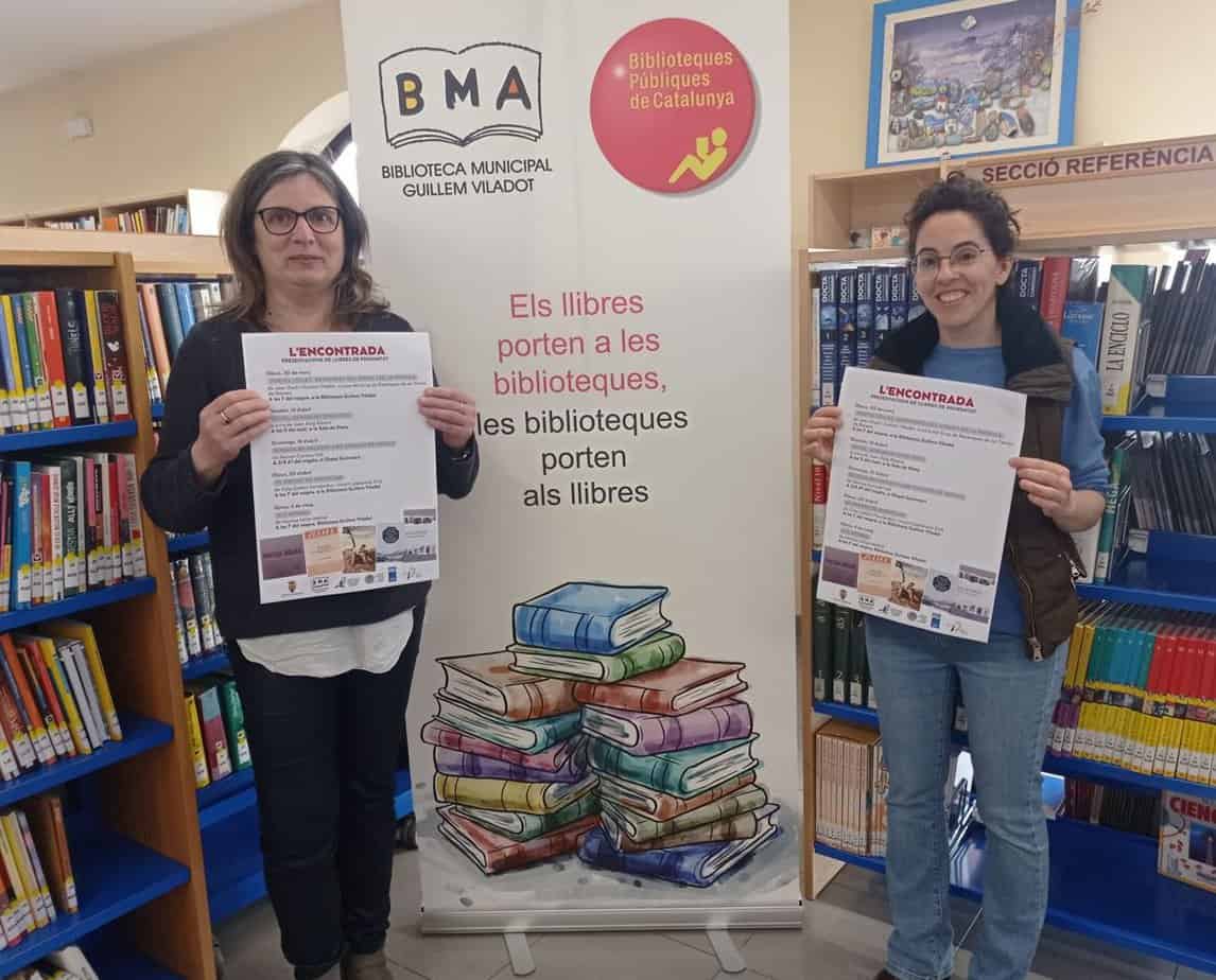 Foto: Presentació de l’Encontrada amb la regidora de cultura, Amanda Cardona, i la directora de la Biblioteca Municipal Guillem Viladot, Carme Muntó.