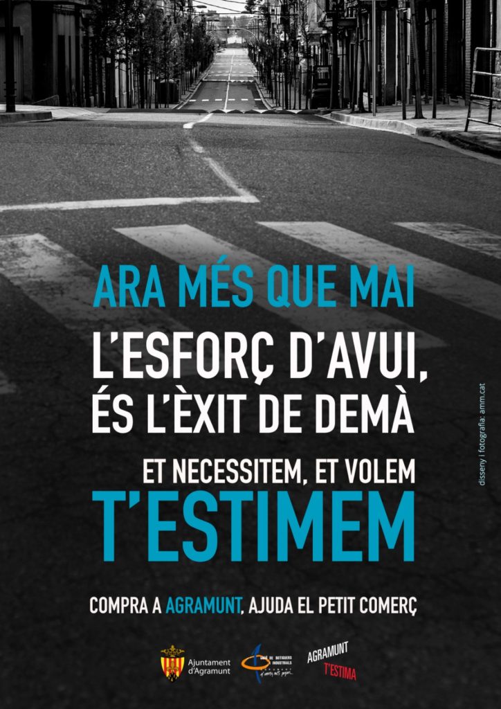 La campanya s’engloba dins la marca “Agramunt t’estima” i amb l’eslògan “Compra a Agramunt, ajuda el petit comerç” es podrà veure un vídeo que mostra els carrers buits i sense vida d’Agramunt. L’objectiu és fer visible que quan la vida al carrer està aturada, els comerços estan tancats, i si quan la gent pugui sortir al carrer no ajuda als comerços locals, els negocis hauran de tancar.