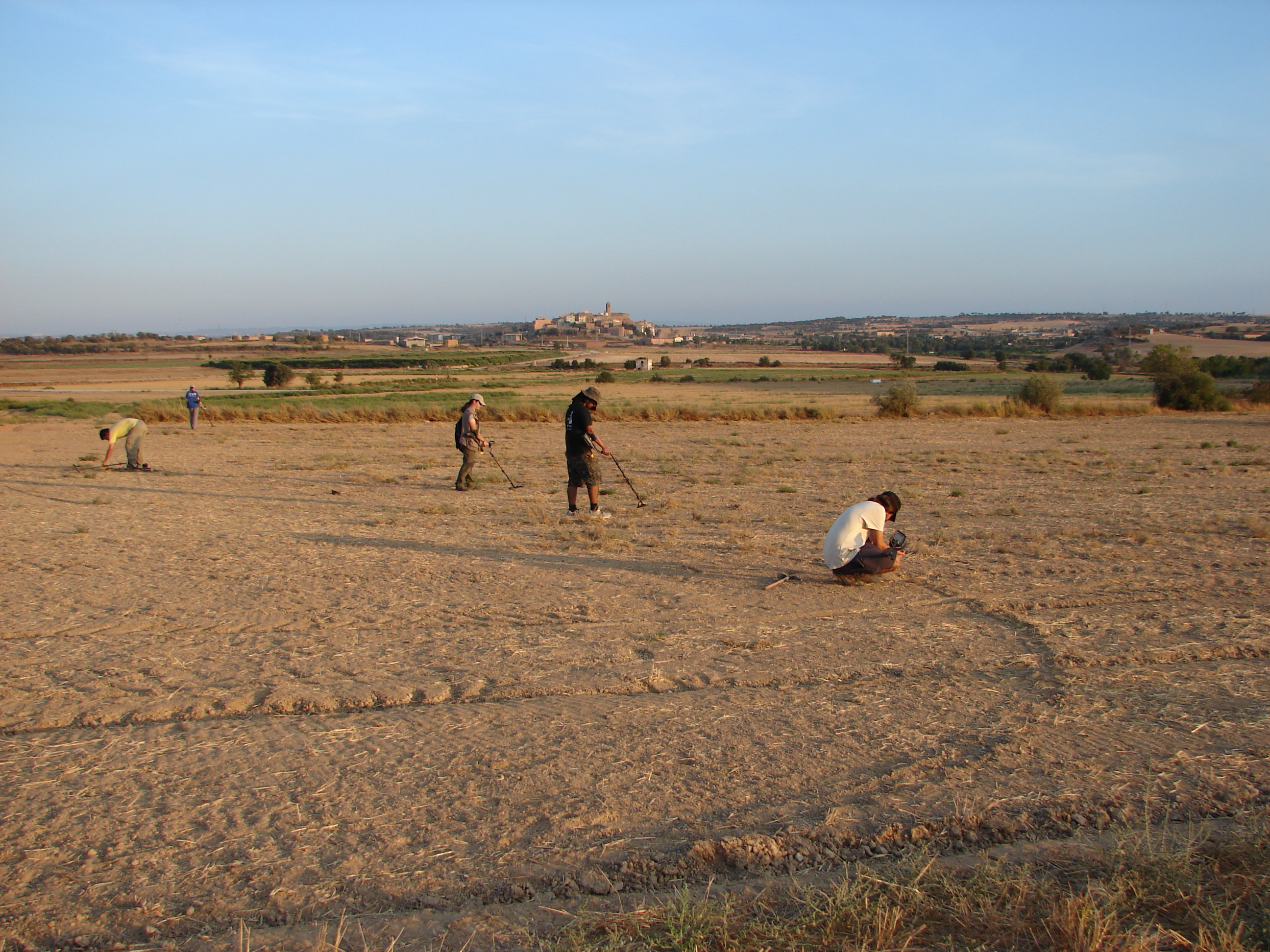 Un dels objectius del projecte d’investigació Guerra i conflicte al nord-estde la Península Ibèrica en època romana republicana (segles III-I aC)és intentar caracteritzar aquestes ocupacions esporàdiques, que en principi semblen definides per una concentració anòmala d’aquestes monedes, molt rares al nord del riu Ebre. Tanmateix, els treballs han avaluat la presència d’altres assentaments similars a la plana de Lleida, molts d’ells situats sobre la possible ruta de les tropes d’Anníbal Barca, remuntant la conca del riu Segre. Un dels resultats més interessants ha estat el descobriment d’un campament romà més tardà, datat durant les guerres sertorianes (83-72 aC), prop de la Granja d’Escarp, gràcies a la troballa de monedes ibèriques de bronze, fíbules i projectils de plom, un d’ells amb la inscripció Q.SERT. PROCOS / PIETAS (Quint SertoriProconsul / Pietas).