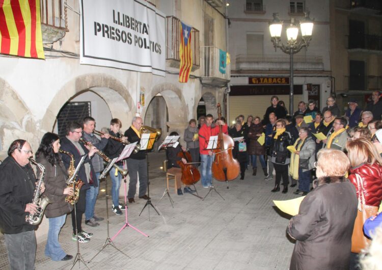 En aquest acte es va llegir un manifest reivindicatiu i com fan des del mes de desembre diàriament i ininterrompudament, músics de Bellpuig i els voltants, van interpretar cançons reivindicatives i l’himne dels Segadors.