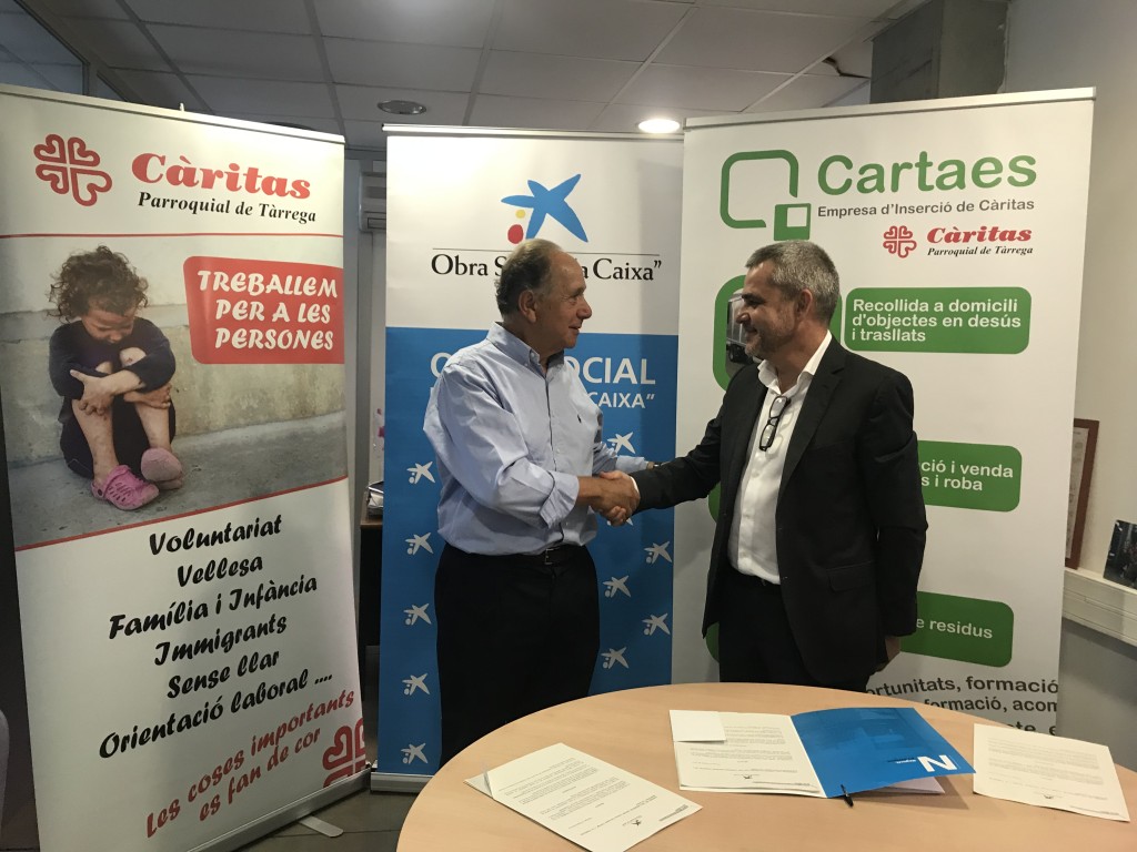Avui dilluns Cartaes Tàrrega Empresa d’Inserció i l’Obra Social “la Caixa” han signat un conveni de col·laboració amb l’objectiu d’afavorir la inserció socio-laboral a persones en risc d’exclusió social.