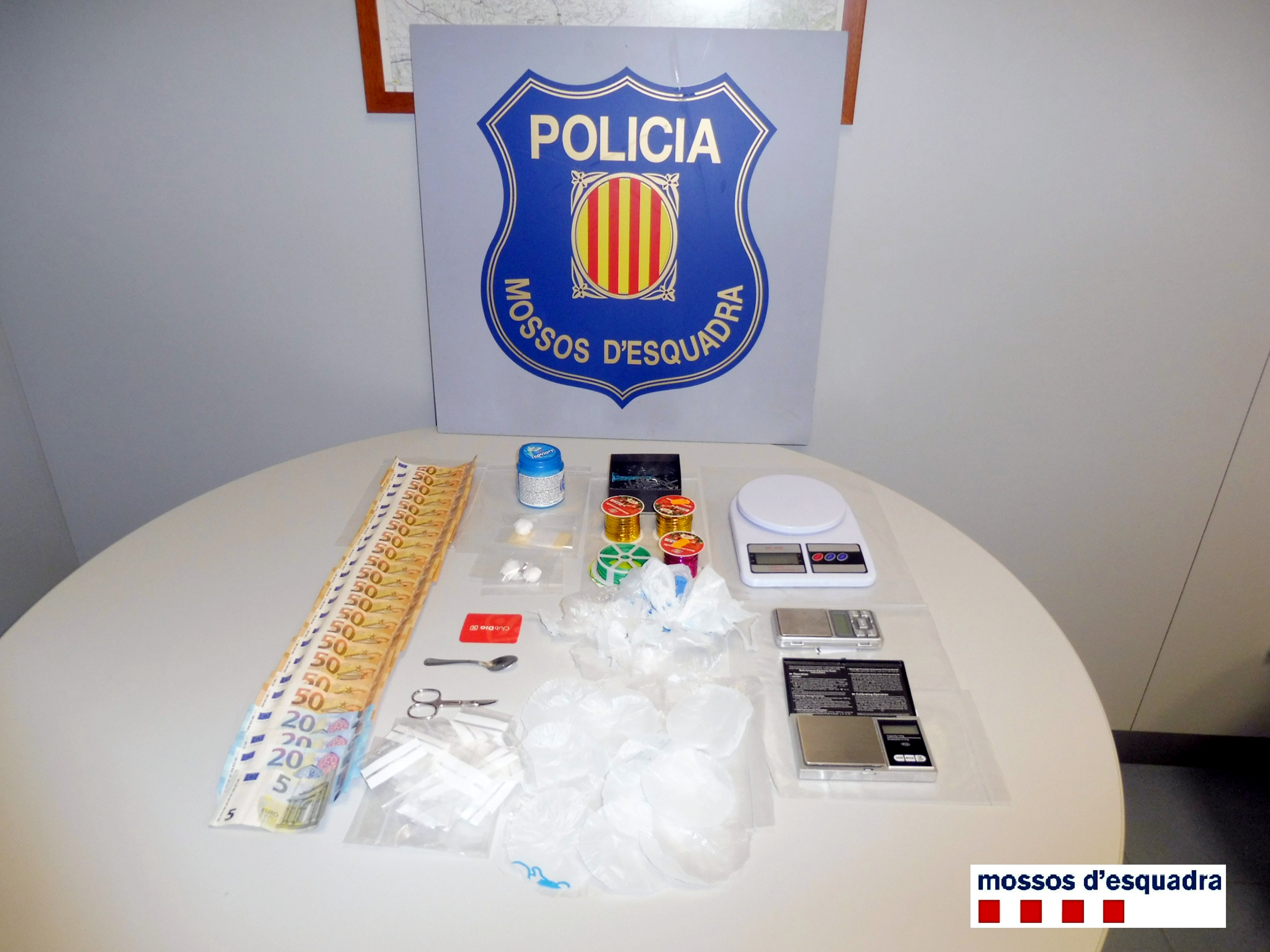 S’ha registrat el seu domicili i s’hi han trobat petites dosis de cocaïna, una bàscula de precisió i mil euros en efectiu