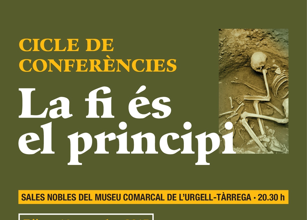 El Museu Comarcal de l’Urgell – Tàrrega inicia el dijous 16 de novembre un cicle de conferències sobre els ritus funeraris de la Catalunya prehistòrica. Són activitats paral·leles a l’exposició de la mateixa temàtica que l’esmentat equipament cultural acull fins al 17 de desembre, titulada “LA FI ÉS EL PRINCIPI”. Josep Bosch, director del Museu de Gavà i un dels comissaris de la mostra, serà l’encarregat de pronunciar la primera conferència, que du per nom “PRÀCTIQUES FUNERÀRIES A LA CATALUNYA PREHISTÒRICA” (2/4 de 9 vespre, Museu Comarcal de l’Urgell – Tàrrega). En aquesta xerrada es desgranarà el contingut de l’exposició, integrada per 300 objectes recuperats en diversos jaciments. Són vestigis que permeten interpretar els canvis culturals, les creences i el món simbòlic.