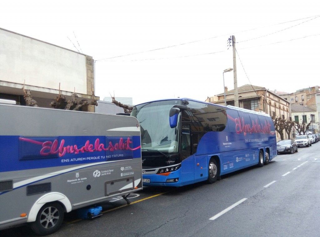 ‘El Bus de la Salut’ ha començat avui dilluns 11 de gener el seu recorregut de l’any 2016 a Cervera. Els propers 12 mesos, el bus visitarà 40 municipis de la demarcació de Lleida. A més, enguany el bus va acompanyat d’una caravana on es realitzen més proves de prevenció cardiovascular i renal. Al voltant d’unes 3.000 persones d’Assistència Primària amb factors de risc cardiovasculars passaran pel bus l’any 2016.