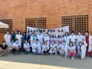 Els professionals del CAP de Tàrrega s’han concentrat aquest dimecres aturant uns minuts a seva activitat per reclamar millores en el l’Atenció Primària. Creuen que cal situar-la al centre de l’Assistència Sanitària, amb més recursos i professionals. Mercè Agustí, metgessa d’Atenció Primària al CAP de Tàrrega des del 1978 ha explicat que ” Ha viscut en 40 anys una millora de l’atenció a la salut en el primer nivell: ambulatòri i de domicili. Les coses han canviat i millorat molt. Actualment, l’Atenció Primària perd qualitat i per això avui molts ambulatoris i CAP fem aquest acte simbòlic per reclamar que es prioritzi. S’ha de dir que en aquest nou govern el pressupost de salut és de 5.000 milions i s’inverteixen a la primària 300, un 6%. El lògic per fer més sostenible el Sistema Sanitàri, un 25% seria el mínim que necessitariem. L’Atenció Primària perd qualitat perquè som pocs, tenim molta feina i no donem a l’abast. Tenim demores de dues o tres setmanes.”