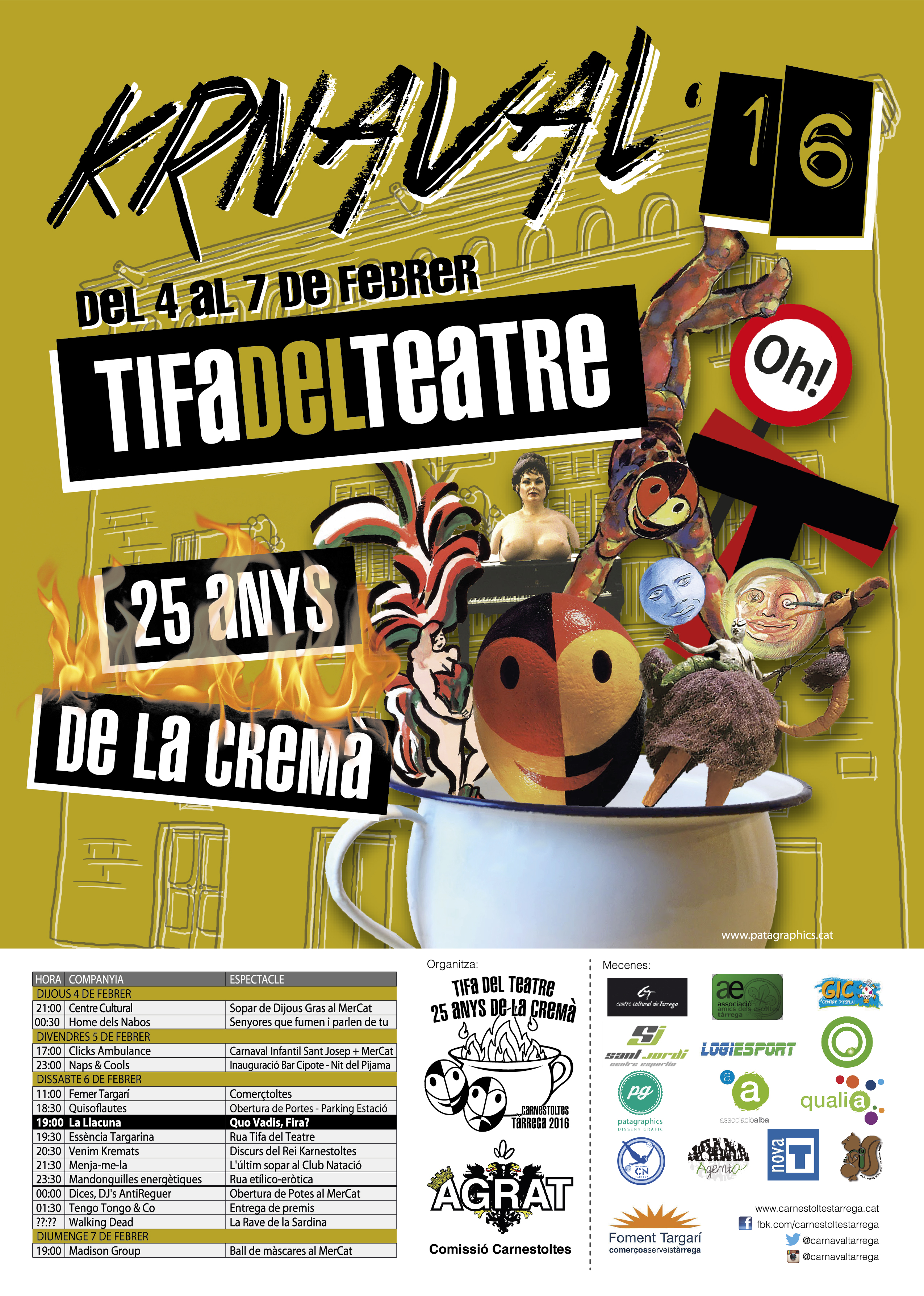 Del 4 al 7 de febrer i sota el lema “Tifa Del Teatre” s’han preparat un grapat d’activitats que també inclouran un record històric als fets que van passar fa 25 anys amb l’atac a l’Ajuntament de Tàrrega la matinada del 8 de setembre del 1991.