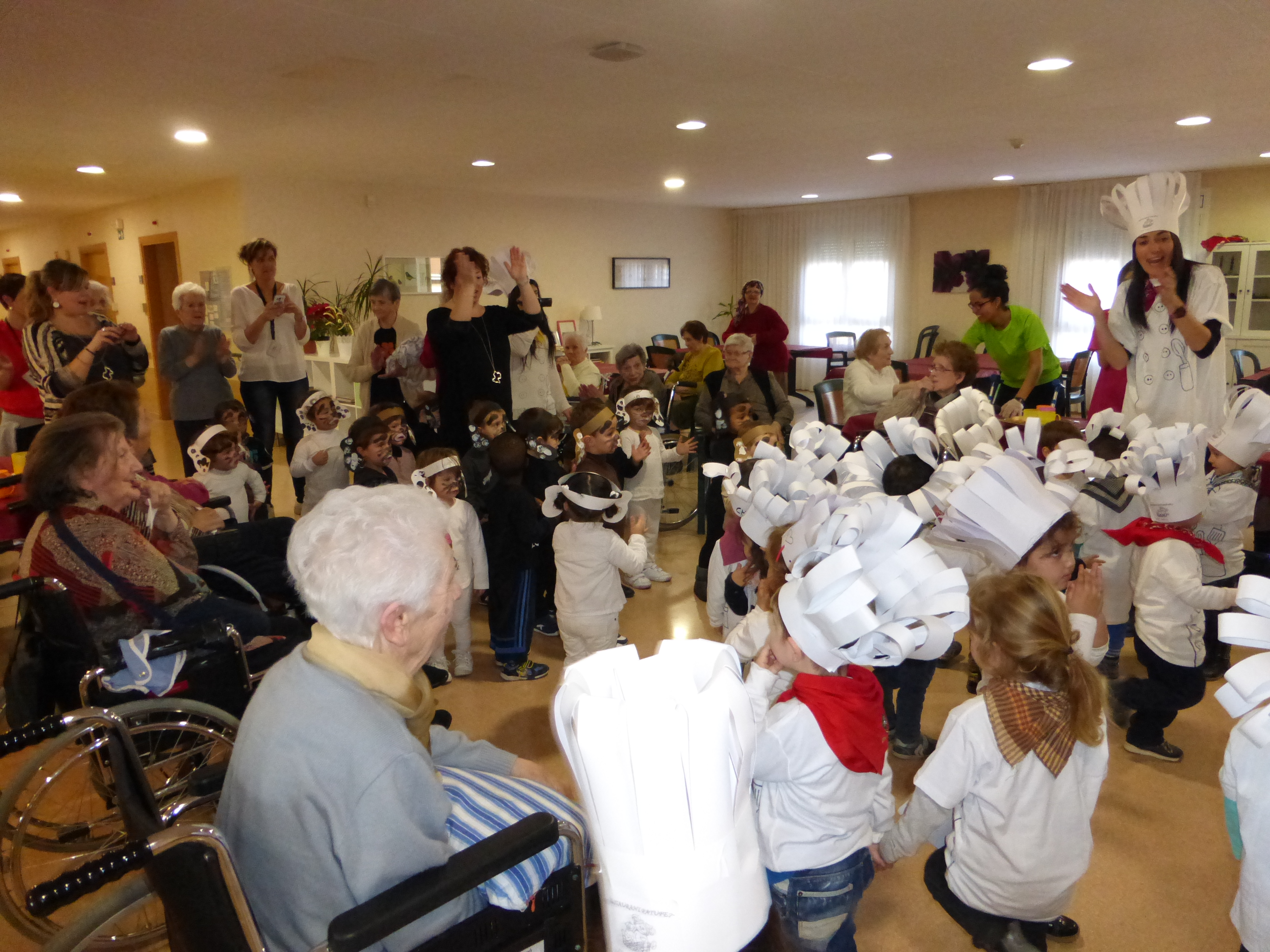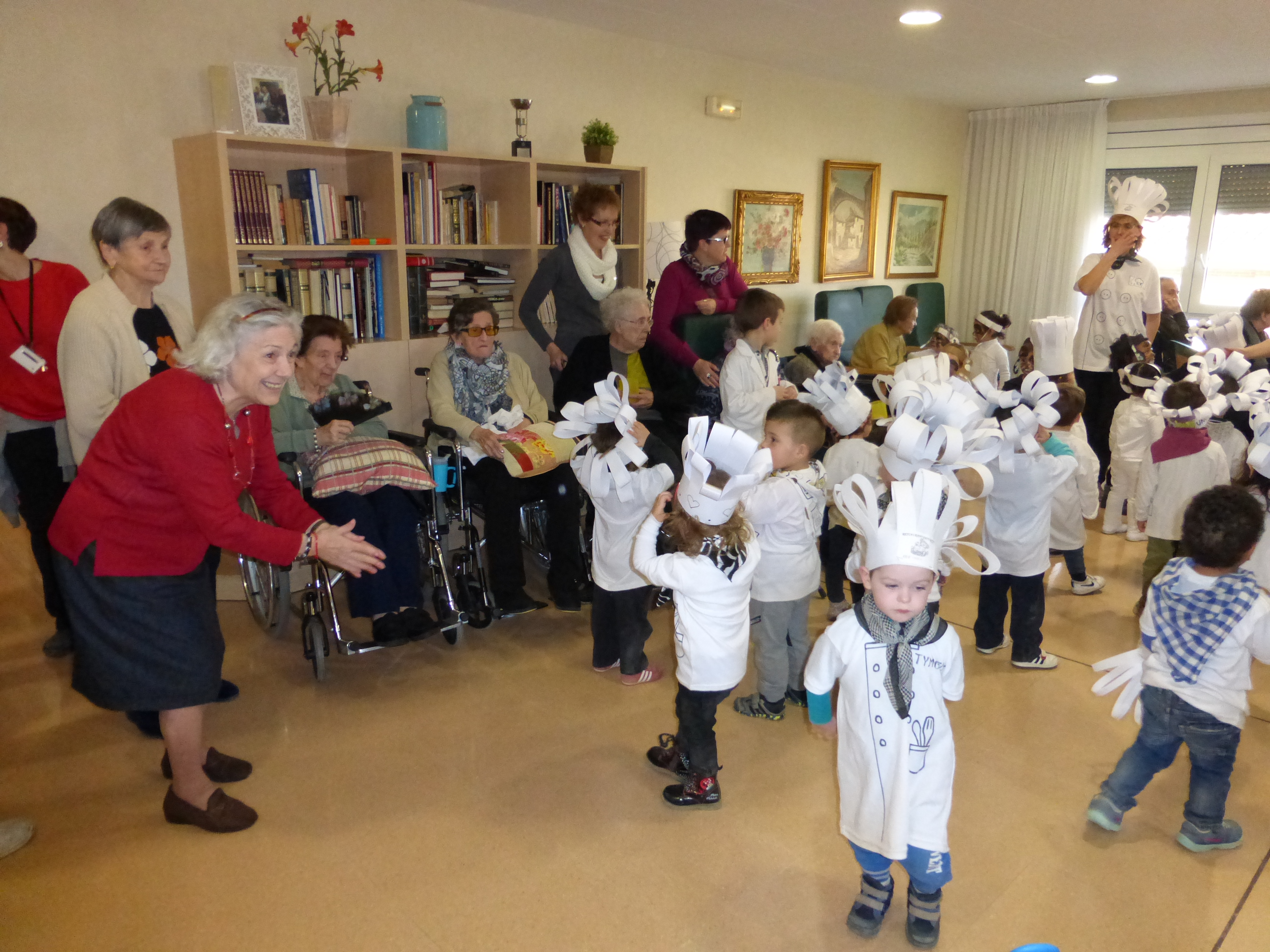 Els petits de la vila disfressats de cuiners i gossets van fer gaudir als avis de la Fundació d’una tarda molt agradable en la que van compartir rua, berenar i ballaruca.