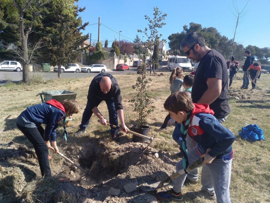Un centenar de persones, membres de l’agrupament, pares i també col·laboradors, han passat el matí plantant i regant els arbres.