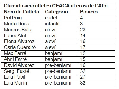 A continuació podeu consultar la classificació dels atletes del CEACA que van participar al cros de la Pobla de Segur: