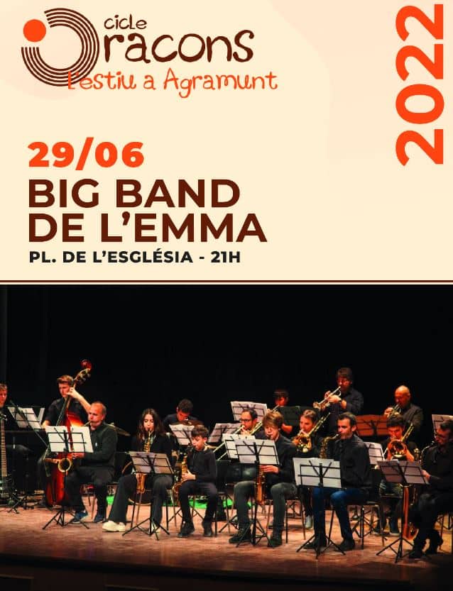La Big Band de l’Escola Municipal de Música d’Agramunt serà l’encarregada d’obrir el cicle, el proper dimecres 29 de juny a la plaça de l’Església, a les 9 del vespre. La formació, creada l’any 2019 pel saxofonista i professor Jaume Sanchis amb l’objectiu d’apropar el jazz i la música moderna als alumnes, estarà dirigida pel mestre Sergi Vergés, professor d’arranjament de jazz al Conservatori Superior de Música del Liceu. Aquesta col·laboració coincideix amb una jornada pedagògica, impartida per Vergés, als alumnes de l’escola de música.