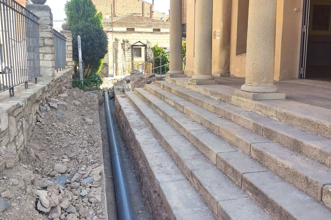 Els treballs inclouen l’obertura de rases per col·locar al subsol una nova xarxa de recollida d’aigües pluvials. Així també se solucionaran els problemes de filtracions que han causat el deteriorament del ferm.