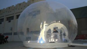 En temps de pandèmia, les paraules “bombolla” i “segura” han pres més protagonisme que mai. Sota aquest concepte, els artistes Carles Marigó i Jaume Sangrà han creat una nova instal·lació que vol recrear aquest espai des d’una perspectiva artística i cultural amb el propòsit de fer reflexionar a l’espectador.