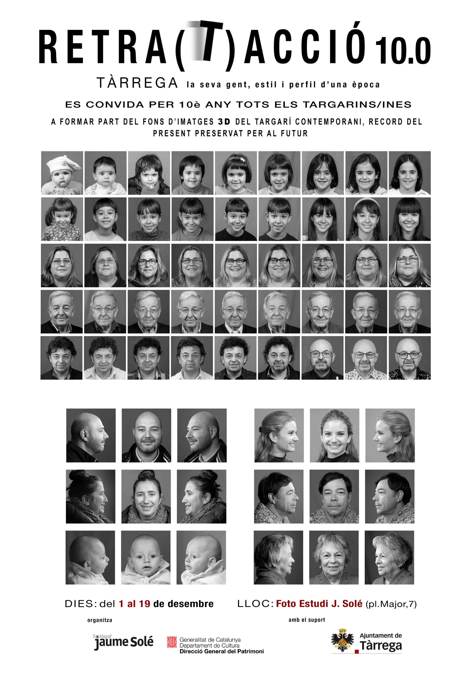 L’Arxiu Comarcal de l’Urgell i el fotògraf Jaume Solé desenvoluparan la desena fase del seu projecte etnogràfic ‘Retra(t)acció’ de l’1 al 19 de desembre. Enguany, amb la cancel·lació de la 22a Fira d’Artistes i Activitats Tradicionals a causa de la pandèmia, l’activitat es trasllada a l’estudi de Jaume Solé a la plaça Major, 7. A més, la convocatòria s’allarga durant tres setmanes (més enllà dels tres dies que acostuma a durar la fira). Basada en l’obtenció de fotografies en relleu mitjançant tres càmeres simultànies, ‘Retra(t)acció’ és una iniciativa pionera que des de l’any 2011 documenta l’evolució física i estètica dels targarins i targarines.