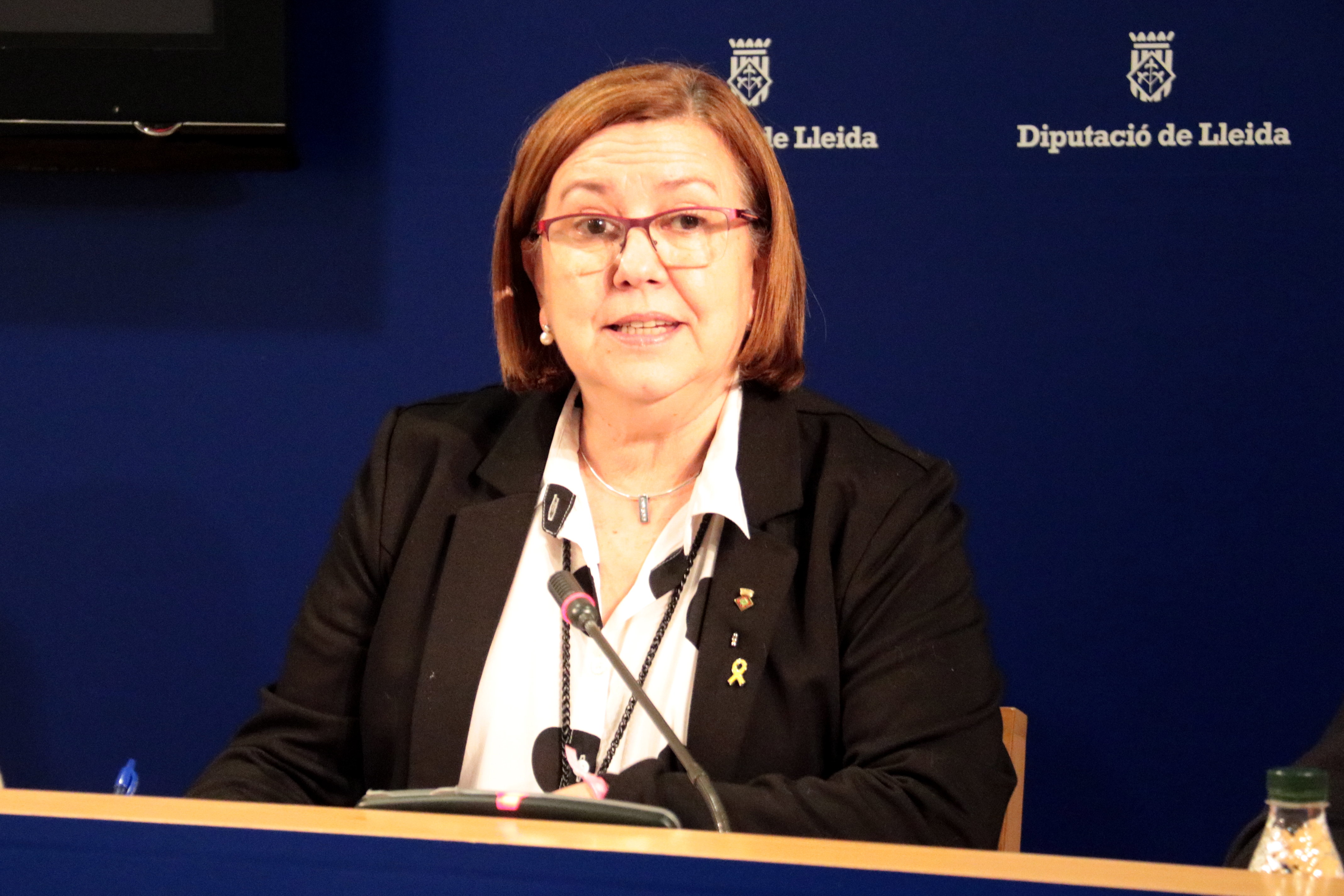 Pla mitjà de la presidenta de la Diputació de Lleida, Rosa Maria Perelló, durant la presentació del projecte de pressupost 2019, el 17 de desembre del 2018. (Horitzontal)