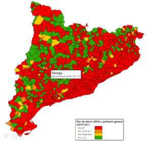 Les darreres dades registrades al mapa de dadescovid.cat indiquen que el risc de rebrot a l’Urgell és de 829,73 i la velocitat de contagi (Rt) es situa en 2,99.