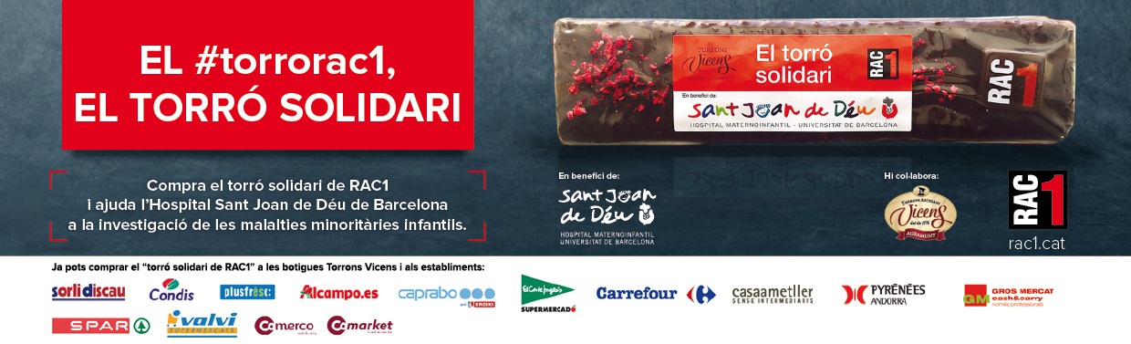 El Torró Solidari de RAC1 i Torrons Vicens torna a sortir a la venda, per segon any consecutiu, per a recaptar fons per a l’Hospital Sant Joan de Déu de Barcelona, concretament per a la investigació de les malalties infantils minoritàries.