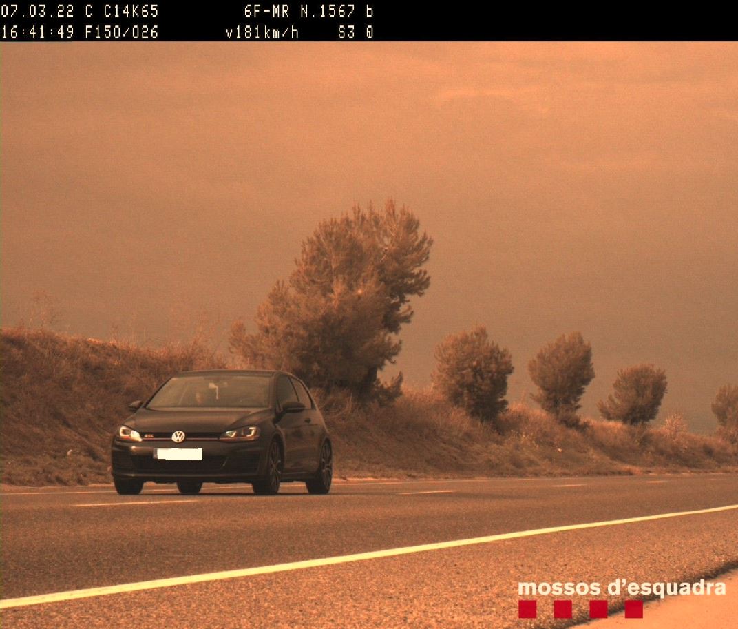 Els fets van passar ahir durant un control de velocitat que es va muntar a l’altura del punt quilomètric 65, de la carretera C-14, dins del terme municipal de Verdú. A les 16:41 hores es va detectar un vehicle circulant a 181 km/h, en un tram limitat a 90 km/h.