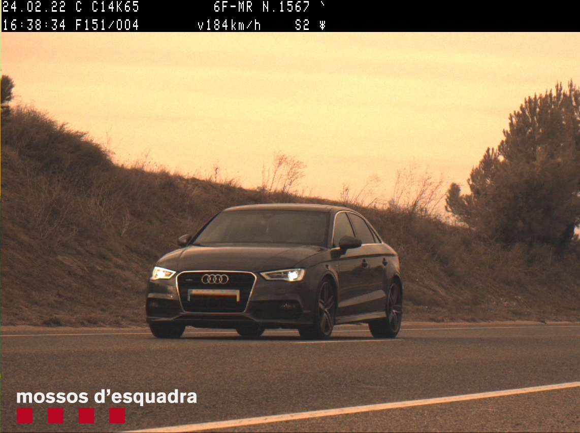 Els fets van passar ahir durant un control de velocitat que es va muntar a l’altura del punt quilomètric 65, de la carretera C-14, dins del terme municipal de Verdú. A les 16:38 hores es va detectar un vehicle circulant a 184 km/h, en un tram limitat a 90 km/h.