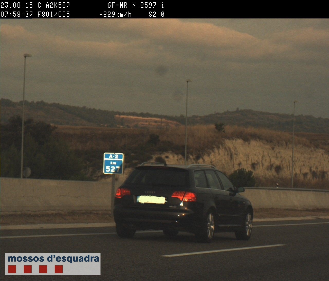 Els Mossos d’Esquadra detecten un turisme circulant a 229 km/h per l’A-2 a la Segarra