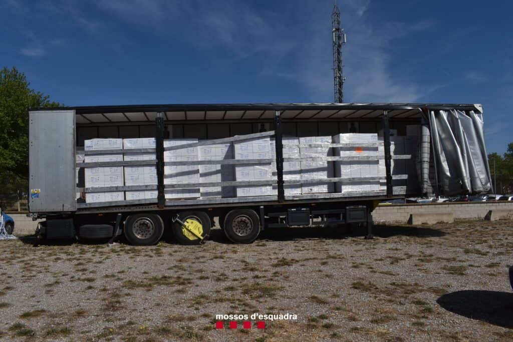 Tot seguit, i davant les sospites que el camió que vigilava el detingut transportés material il·legal, es va immobilitzar el camió a les dependències policials de Tàrrega. L’endemà es va registrar el remolc i, ocult sota la càrrega lícita, es van intervenir 354 kg d’haixix.