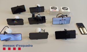 Els agents han recuperat nou telèfons mòbils, que encara duien els dispositius d’alarma associats, i dos rellotges digitals.
