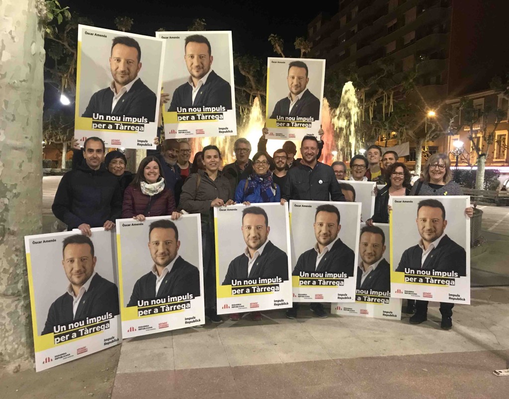 Esquerra Republicana de Catalunya-Moviment d’Esquerres (ERC-MES) ha donat el tret de sortida aquesta nit a la campanya electoral de les eleccions municipals del 26 de maig a Tàrrega. La candidatura encapçalada per Òscar Amenós ha fet a la plaça del Carme la tradicional enganxada del primer cartell. Els republicans comencen la campanya electoral amb la força d’haver guanyat les eleccions del 28 d’abril a Tàrrega, amb 2.879 vots, a 1.000 vots de distància de la segona força.