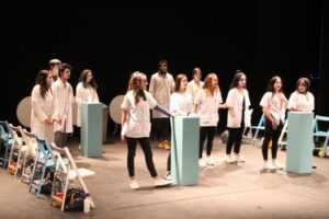 Aquest any, a conseqüència de les mesures que s’han hagut de prendre als centres educatius, només han assistit a la trobada els alumnes participantsE. Per motius d’aforament també, s’ha reduït la presència al teatre a aquests 5 centres dels 10 que inicialment hi havien de participar, tot i que, s’han pogut projectar les seves actuacions.