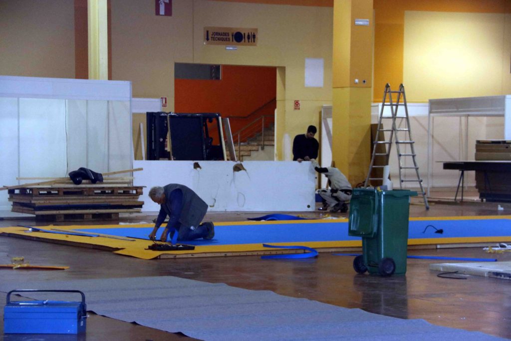 Els operaris treballen amb normalitat als Pavellons Firals preparant el certamen agrícola, previst del 19 al 22 de març