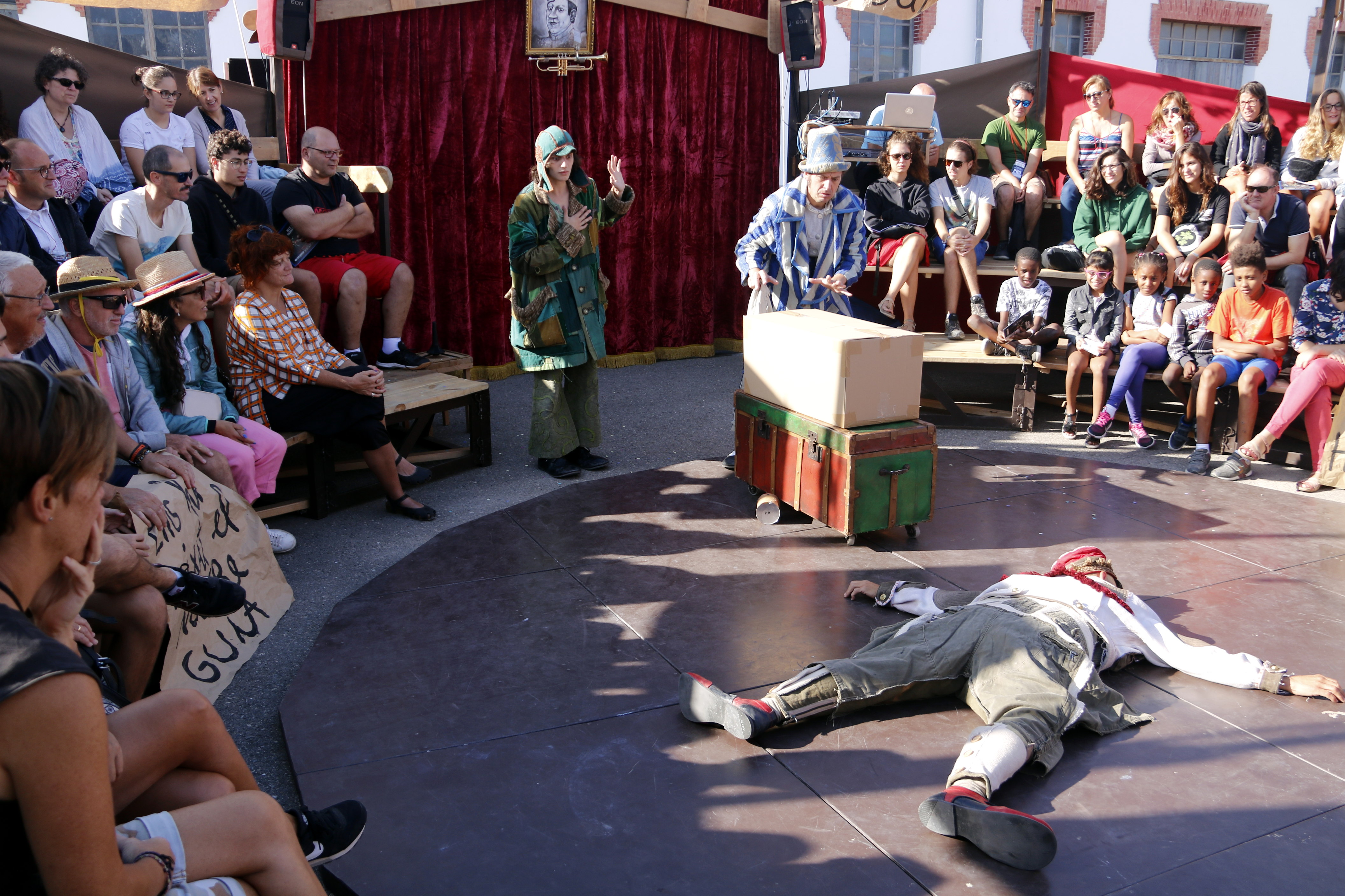 Pla obert on es pot veure un moment de l’espectacle ‘Bye bye, Confeti’, de la companyia La Baldufa, a FiraTàrrega, el 6 de setembre de 2019. (Horitzontal)
