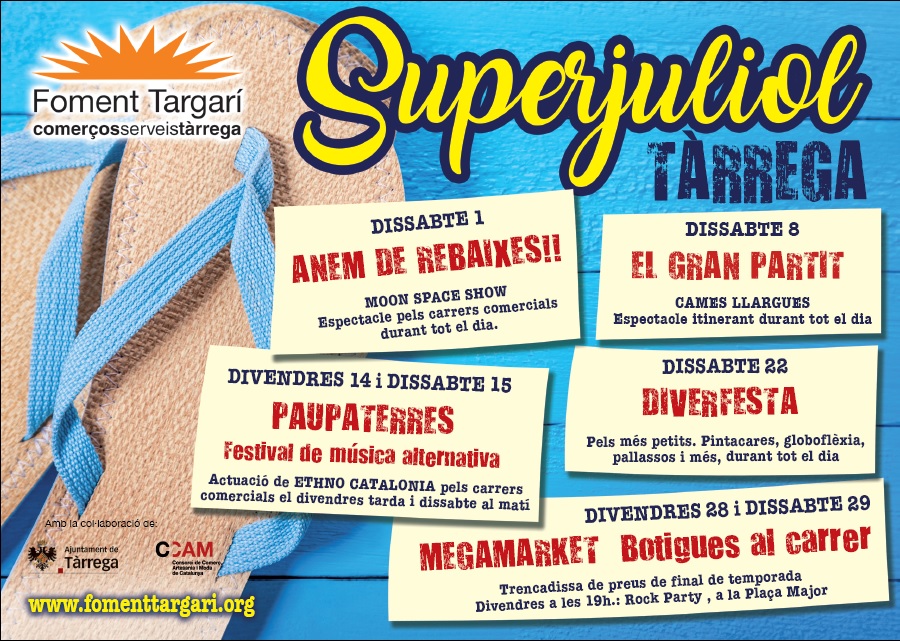 Els comerços de Tàrrega , a través de Foment Targarí, cada cap de setmana de juliol , divendres o dissabtes, engeguen tot una sèrie d’activitats molt atractives per a tots els públics.