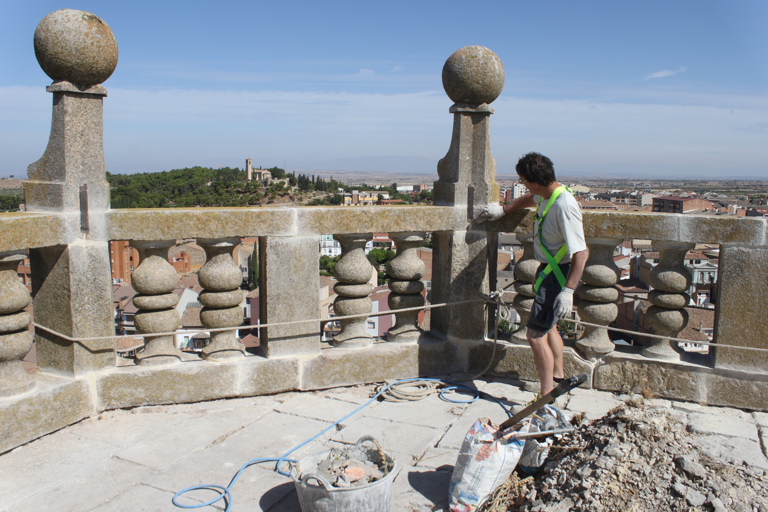 Tàrrega ha iniciat les obres de rehabilitació del campanar de l’Església Parroquial de Santa Maria de l’Alba, un dels edificis més emblemàtics de la localitat. El Bisbat de Solsona, titular del temple, impulsa els treballs conjuntament amb el Departament de Cultura de la Generalitat de Catalunya, la Parròquia i el consistori targarí. La intervenció se centra en la reparació i la impermeabilització de la coberta del campanar, de planta octogonal. D’aquesta forma, es corregeixen les patologies que presenta l’estructura a causa del pas del temps i les humitats. Els operaris procedeixen aquests dies a rejuntar pedres i impermeabilitzar les superfícies per evitar les goteres. Com a elements de protecció, també es col·locaran malles d’acer inoxidable per evitar l’entrada de coloms, en part també responsables del deteriorament del campanar.