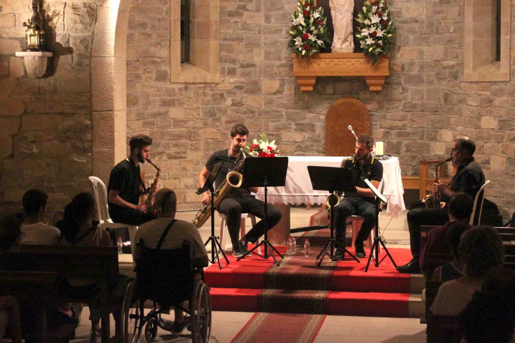 El grup InMotion Sax Quartet ha protagonitzat un vibrant concert de jazz a l’ermita de Sant Eloi de Tàrrega. Ha estat en el marc de la festa de Sant Magí organitzada per l’Associació dels Amics de l’Arbre, l’entitat que té cura del Parc de Sant Eloi, espai de titularitat municipal on l’eremita té una plaça dedicada. Creada l’any 2017, InMotion Sax Quartet és una formació integrada pels músics targarins Joan Clavé (saxo alt), Pau Clavé (saxo soprano i alt), Eduard Seguí (saxo tenor) i Jaume Aligué (saxo baríton). La vetllada, celebrada anit, ha omplert de públic l’ermita de Sant Eloi. Els espectadors han tingut ocasió d’assaborir un repertori d’autors reconeguts del jazz com Thelonious Monk, Franck Wolf o Pedro Iturralde. També s’ha reservat un moment per la música minimalista de Michael Nyman, una altra de les fonts d’inspiració de l’InMotion Sax Quartet. L’activitat ha comptat amb el suport de l’Ajuntament de Tàrrega.
