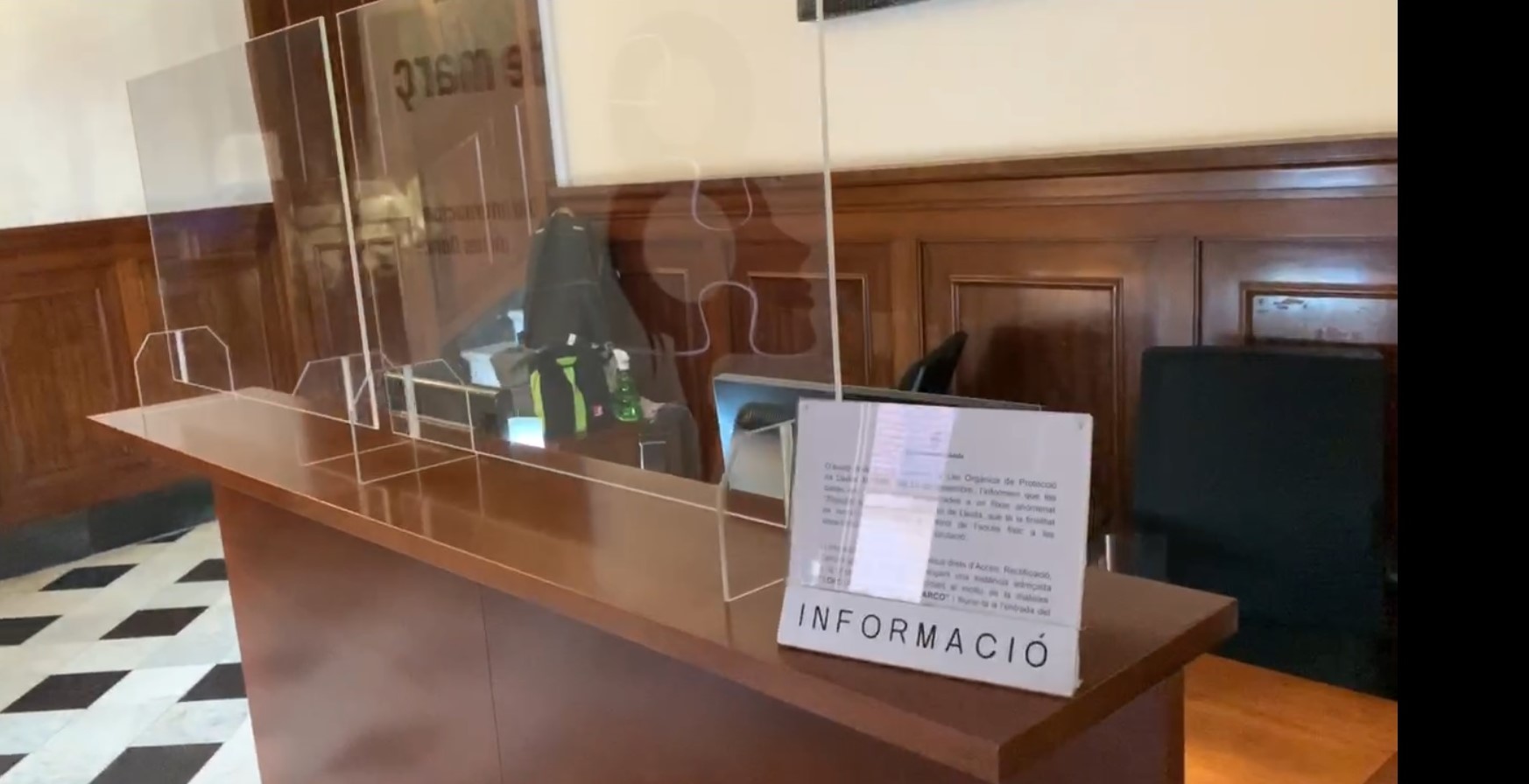 Imatge de mampares instal·lades a la recepció de la Diputació de Lleida, el 12 de maig del 2020. (Horitzontal)
