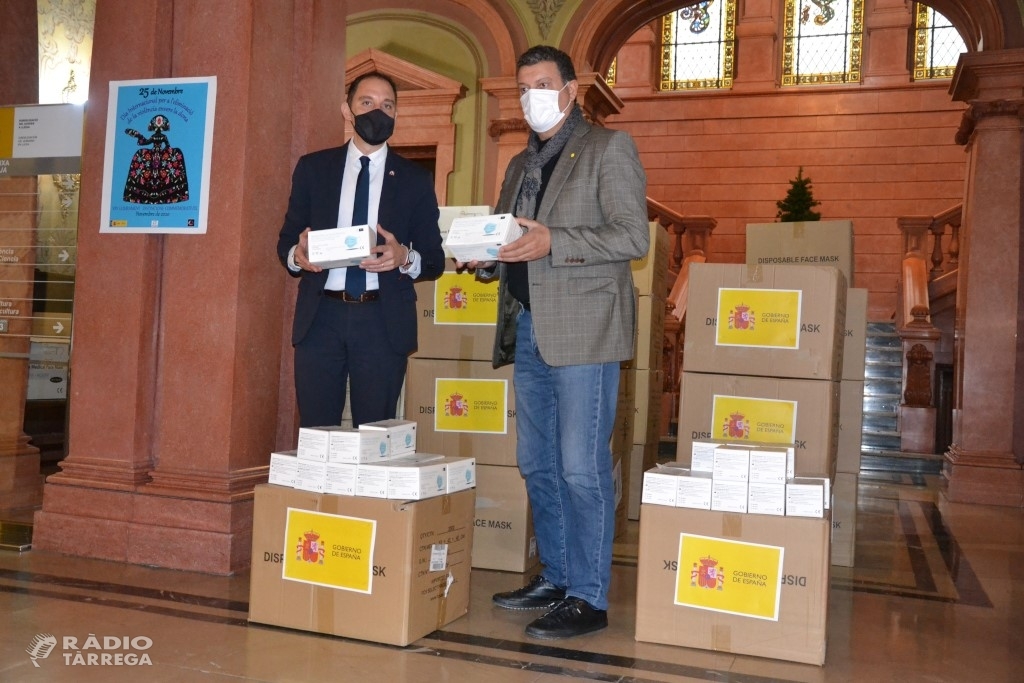 La Diputació de Lleida distribuirà en els propers dies 45.500 mascaretes quirúrgiques entre consells comarcals i ajuntaments de la demarcació de Lleida. El vicepresident Ferran Accensi les ha rebudes aquest dimarts, en nom de la Diputació, de mans del subdelegat del govern de l’Estat a Lleida, José Crespín, en un acte de recepció que s’ha fet a la pròpia subdelegació, tal i com ja va passar el passat mes de juny, quan la corporació provincial va rebre 74.500 mascaretes en un primer lliurament.