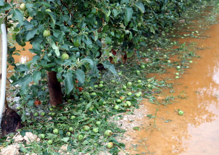 Estiarte ha afirmat que la tempesta de pedra barrejada amb aigua ha deixat danys importants en diferents cultius. “Allà on ha tocat la pedra difícilment es podrà salvar un quilo de poma o de pera”. El panís “també ha rebut molt i els ulls estan trencats i això repercutirà molt tant en l’alçada dels panissos com en la producció de gra”. Pel que fa a l’ordi i blat, “les espigues estan destrossades i queda un percentatge molt petit de gra a la planta”, ha indicat.