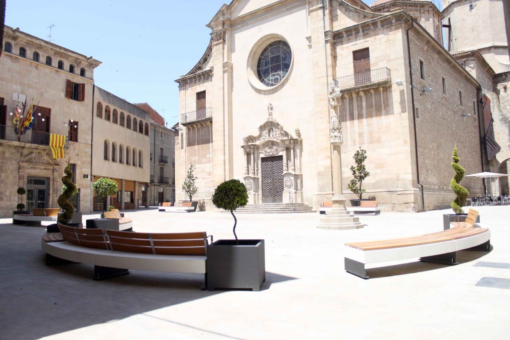 La plaça Major de Tàrrega llueix des d’avui nou mobiliari urbà. El consistori ha instal·lat els bancs i jardineres que ornamenten i donen més funcionalitat a aquest emblemàtic espai del centre històric (la setmana vinent s’instal·laran també papereres i una altra jardinera més). Amb aquesta acció, la capital de l’Urgell arrodoneix el projecte d’adequació de la plaça Major, executat en el decurs dels darrers mesos. Els bancs instal·lats han despertat ja la curiositat dels vianants, que no han resistit les ganes d’asseure’s-hi per primera vegada. En concret, la dotació de mobiliari urbà consisteix en set trams de banc i dotze jardineres amb arbrat de diferents espècies i dimensions.