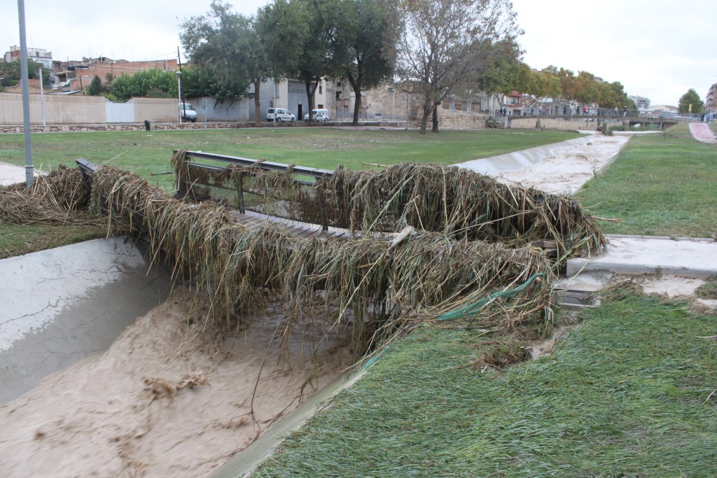 La forta rubinada registrada aquesta passada matinada al riu Ondara s’ha saldat a Tàrrega amb algunes destrosses en mobiliari urbà, en concret a la zona de gespa vora el Camp dels Escolapis. Aquí, la força de l’aigua ha provocat danys en fanals, papereres i el pontó de fusta per a vianants. La passarel·la, si bé no ha estat arrossegada com ocorregué a la riuada de l’any 2015, ha patit desperfectes considerables. La Policia Local ha procedit a acordonar-hi el pas. Cal avaluar també possibles danys a la xarxa de reg. Malgrat això, el balanç de destrosses s’estima molt inferior als provocats per la crescuda del riu de fa tres anys.