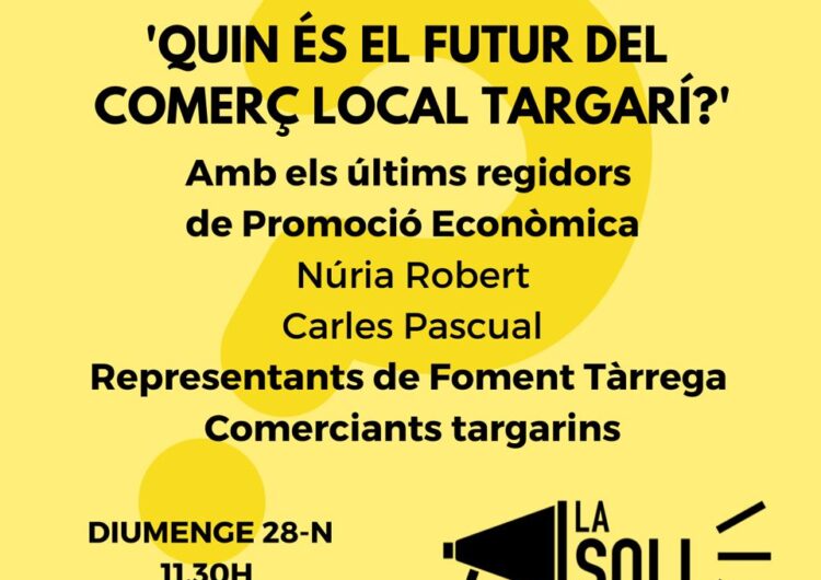 El diumenge 28 de novembre a 2/4 de 12 del migdia al Mercat Municipal se celebrarà la taula rodona amb el títol ‘Quin és el futur del comerç local targarí?’ amb la presència dels últims regidors de Promoció Econòmica de l’Ajuntament de Tàrrega: Núria Robert i Carles Pascual, que han ostentat el càrrec les últimes dues dècades juntament amb Manel Medrano i Felip Robinat, que ens han deixat en els últims anys. A més, també hi haurà representants de l’associació de comerciants Foment Tàrrega i altres botiguers que podran explicar les seves experiències i punts de vista. La xerrada té l’objectiu d’analitzar el moment actual que viu el comerç de la capital de l’Urgell i dibuixar el camí a seguir en un moment on la digitalització i el canvi de tendències de consum està afectant el sector de les botigues clàssiques. A més, s’obrirà el torn a reflexions i consultes del públic per poder-lo fer més participatiu i que inclogui les diferents perspectives sobre aquesta temàtica en un cap de setmana que coincideix amb el Black Friday.