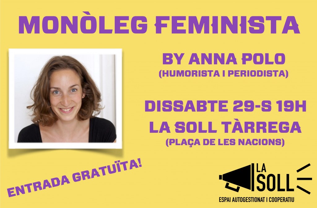 La Soll organitza un monòleg sobre femenisme a càrrec d’Ana Polo aquest dissabte 29-S a les 19h