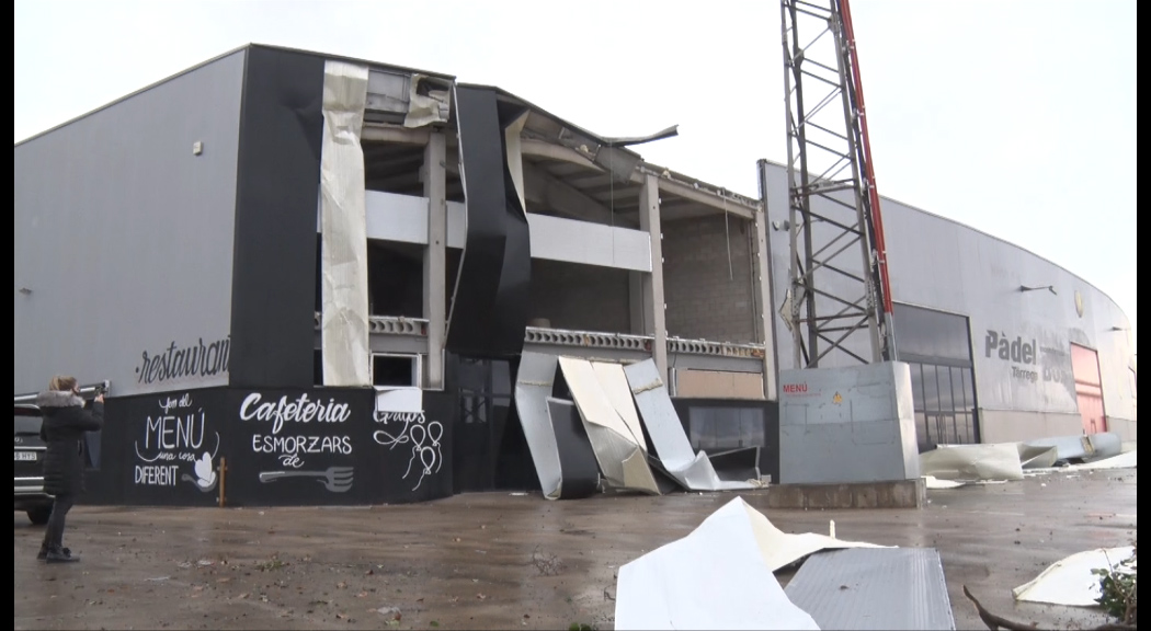 Les instal·lacions on hi ha ubicat el club de paddle, tendals d’un establiment de restauració de la plaça del Carme, i algunes naus del polígon de La Canaleta, han patit greus desperfectes. També s’han trencat vidres i estructures metàl·liques d’alguns edificis.