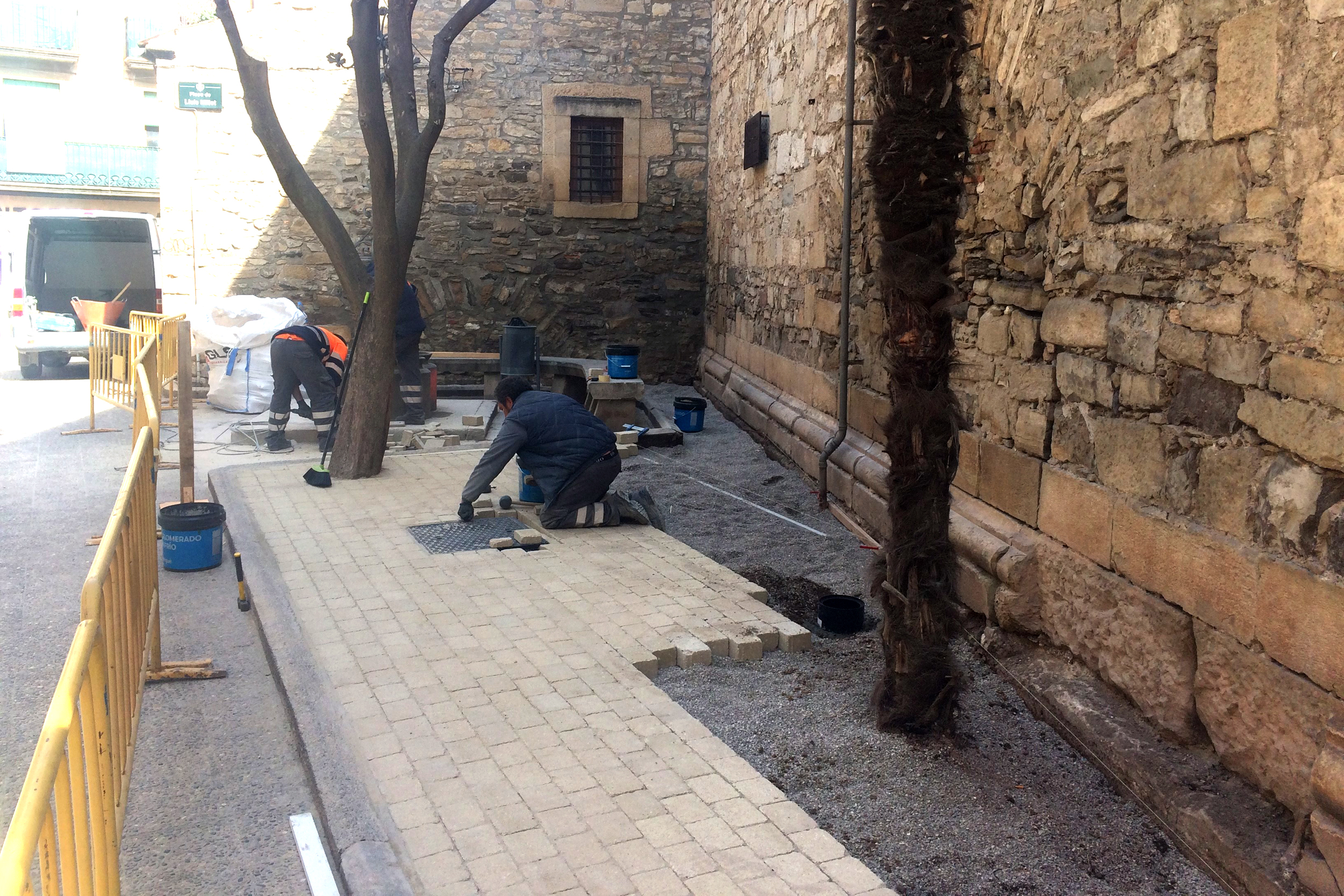 El parterre enjardinat se substitueix per llambordes de pedra per posar fi als problemes d’humitat que malmeten les parets del temple · Es restaurarà la font i s’instal·laran cinc noves lluminàries
