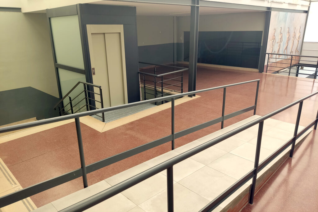 El lot d’obres, adjudicat a l’empresa Ordenació Forestal SL, ha inclòs la construcció de lavabos adaptats i rampes, l’ampliació de zones de pas i la instal·lació de mecanismes com l’ascensor que molt aviat es posarà en servei al Pavelló d’Esports.
