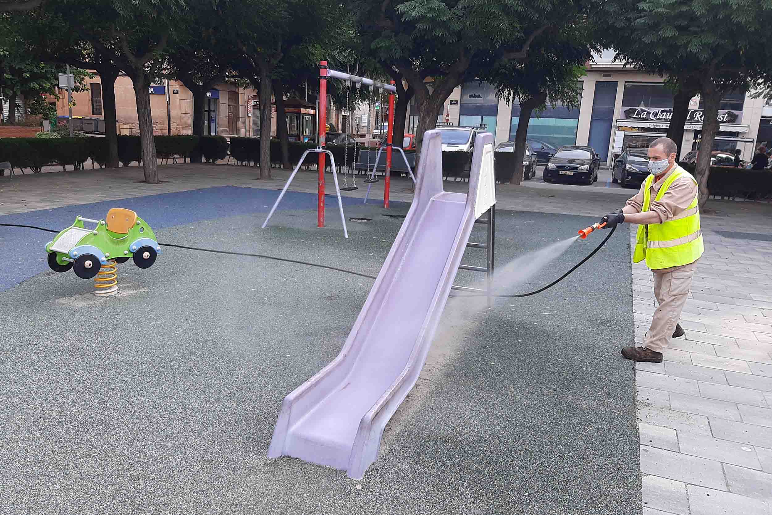 L’Ajuntament de Tàrrega intensifica des d’avui els treballs de desinfecció i neteja dels parcs infantils de la ciutat com a mesura de reforç preventiu davant la Covid-19. Operaris de la Brigada Municipal tornen a realitzar amb periodicitat diària aquestes tasques atenent a les noves pautes d’ús i manteniment dels parcs infantils indicades pel Govern català. Així, cada dia es desinfectaran de nou gronxadors, tobogans, baranes i agafadors, que són superfícies de contacte freqüent. Així mateix, la Policia Local efectuarà controls en què els agents vetllaran per evitar aglomeracions de gent a les àrees de jocs infantils. Val a dir que l’Ajuntament de Tàrrega ja va dur a terme treballs de desinfecció dels parcs infantils anteriorment en el marc de la represa. A més, durant l’estat d’alarma també es van desinfectar llocs sovintejats de pas al voltant d’establiments d’alimentació, farmàcies, l’estació d’autobusos o el CAP.