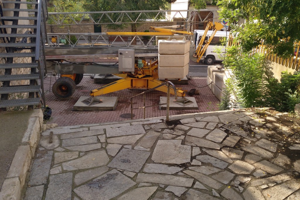 Espai urbà situat entre el Col·legi Jacint Verdaguer i l’Escola Municipal de Música, molt transitat per vianants · Els esgraons es troben deteriorats pel pas del temps · Operaris de Serveis Municipals es fan càrrec dels treballs