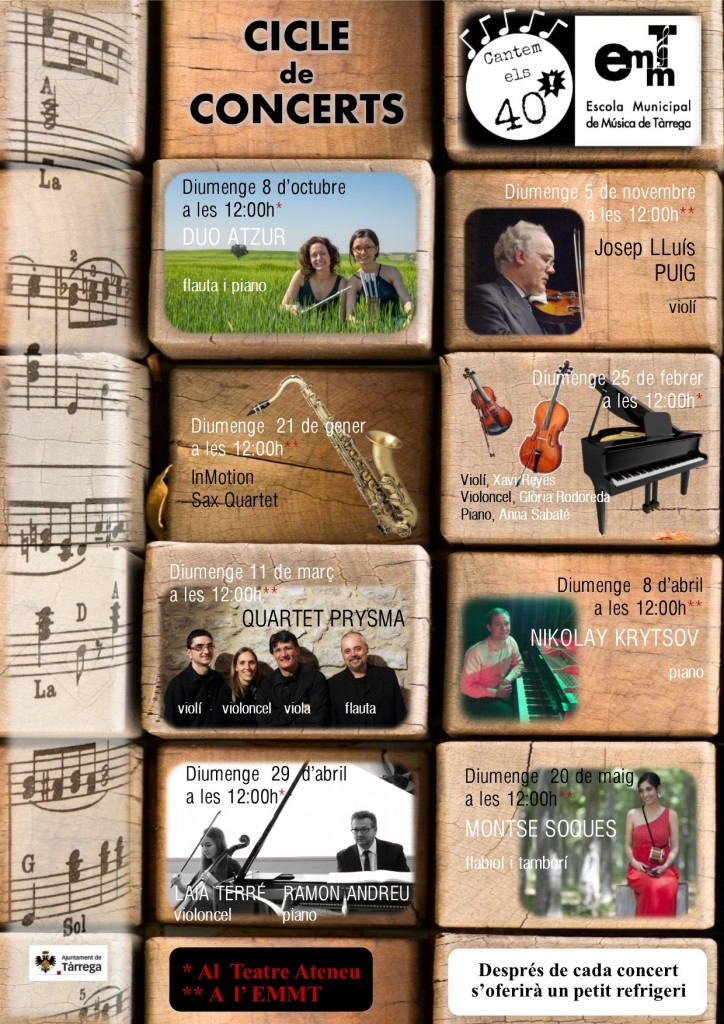 L’Escola Municipal de Música de Tàrrega compleix 40 anys i per celebrar-ho ha preparat un seguit de concerts que tindran lloc al llarg del curs 2017-2018.