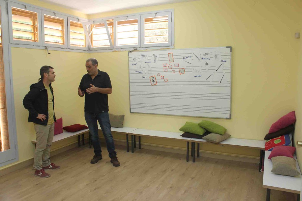 L’Escola Municipal de Música de Tàrrega (EMMT) ha posat en servei una nova aula especialment habilitada per als alumnes més petits del centre. Es tracta d’un espai on s’impartiran els tallers de sensibilització musical, els quals es desenvolupaven en diferents aules de l’escola. Ara, i coincidint amb l’inici de curs, l’alumnat de 3 a 6 anys d’edat disposarà d’una aula pròpia i específicament adaptada a les seves necessitats. Així, s’ha instal·lat parquet al terra, s’han repintat les parets i s’ha proveït un nou mobiliari amb coixins creant un ambient d’estudi agradable per als menuts. La major part de les obres han estat realitzades per operaris de Serveis Municipals. El regidor d’Educació, Xavier Rossell-Aparicio, ha visitat la nova aula acompanyat del director de l’EMMT, Joan Clavé (vegeu fotografia). L’edil ha destacat que amb una petita inversió i una redistribució d’espai s’ha aconseguit afegir una millora a les instal·lacions del centre. “El disseny de la nova aula facilita als infants l’aprenentatge del llenguatge musical”, ha afegit Xavier Rossell–Aparicio.