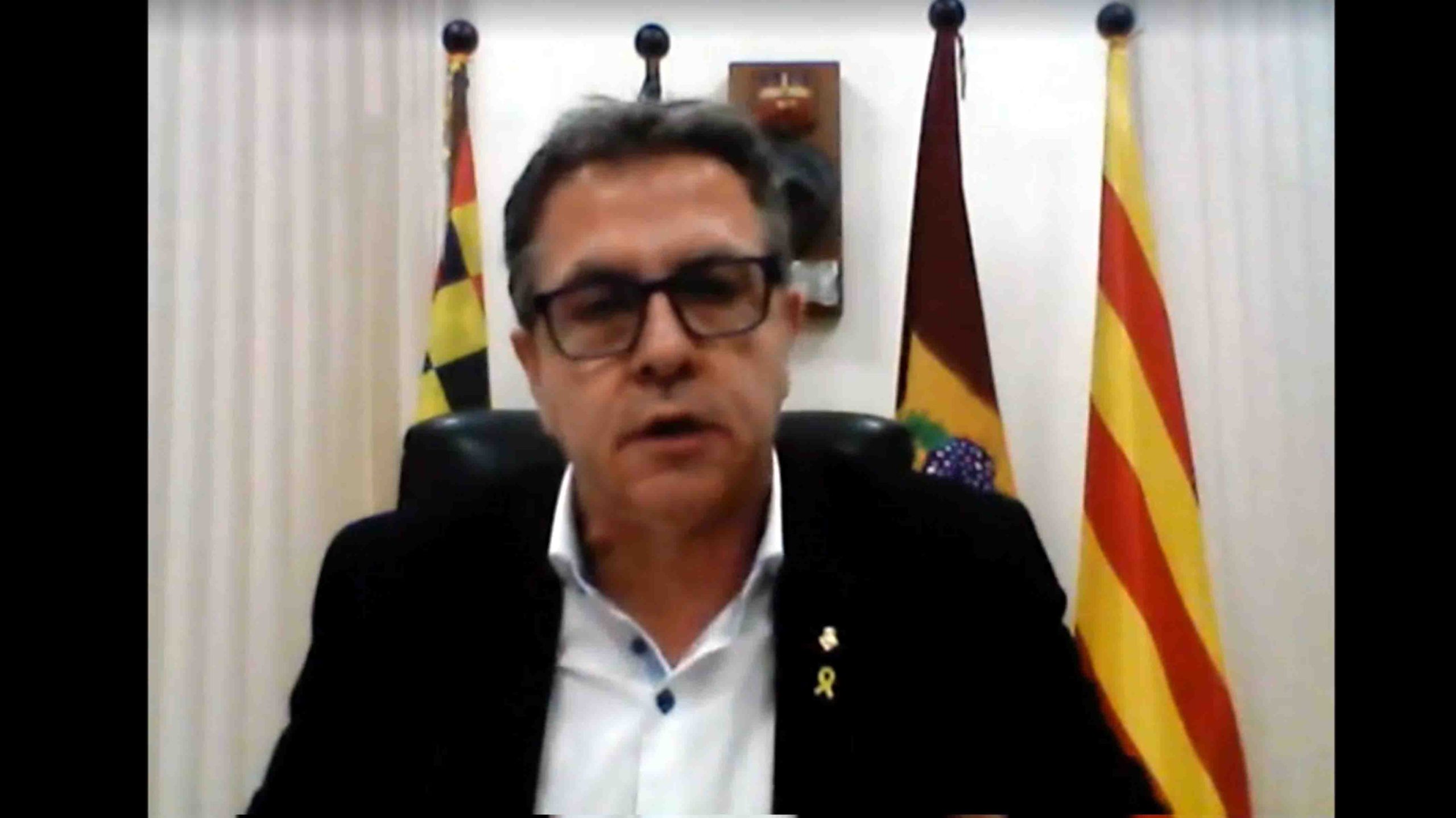 Pla mitjà del president de la Diputació de Lleida, Joan Talarn, durant el primer telemà tic de la institució, celebrat el 24 d’abril del 2020. (Horitzontal)