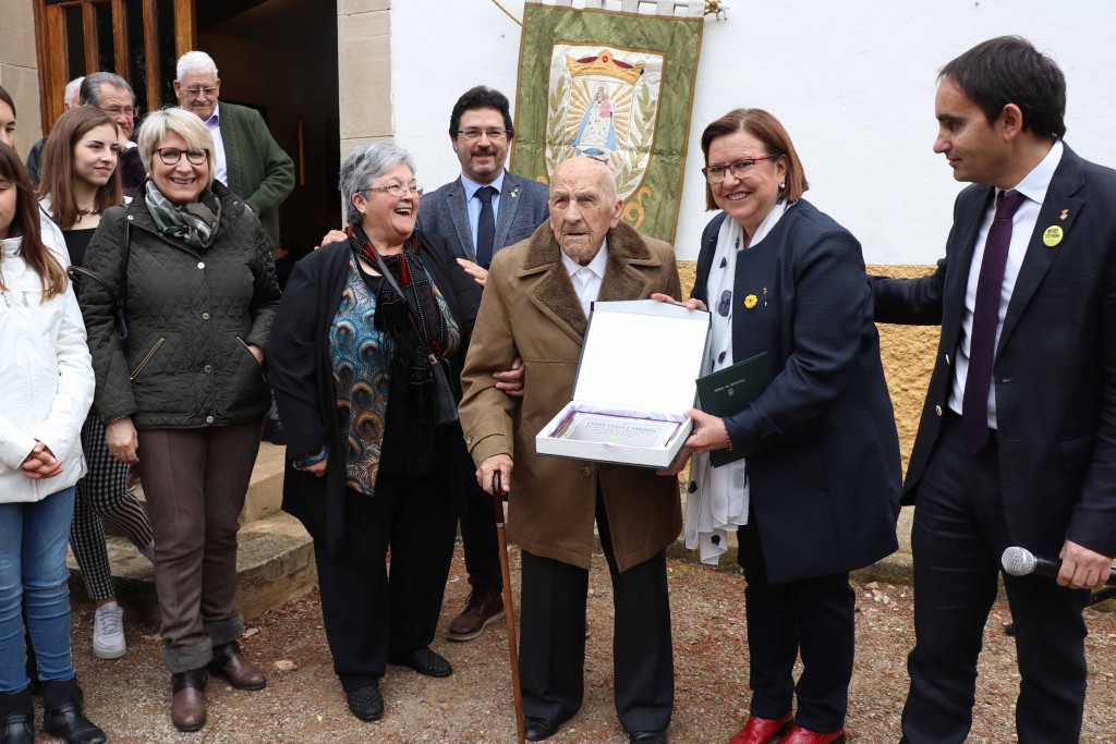 La presidenta de la Diputació, Rosa Maria Perelló, ha assistit a la missa i a la celebració popular, que ha reunit 400 persones i han homenatjat al veí de 105 anys, Anton Canela Argilés